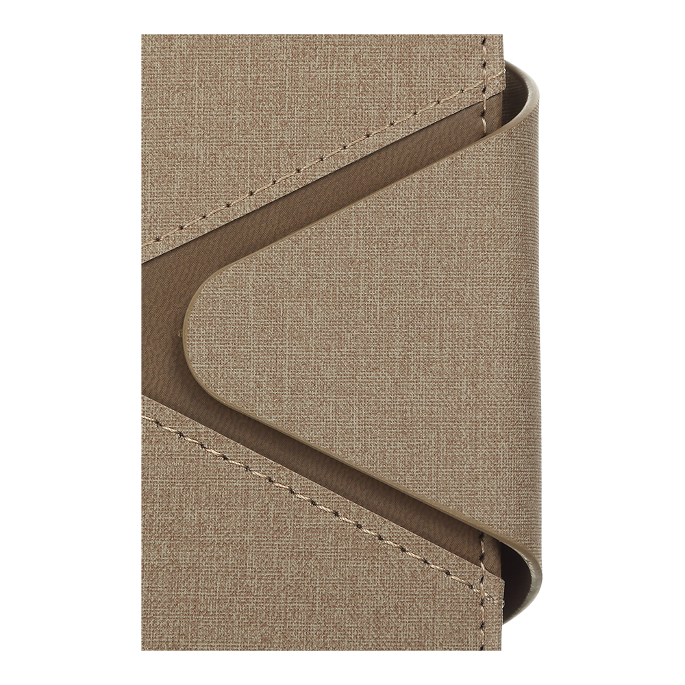 Жорстка обкладинка щоденника NAVIGATOR виконана зі штучної шкіри з поролоном. Завдяки широкій магнітній застібці, щоденник можна легко та швидко зафіксувати в закритому стані. Оригінальності щоденнику додає комбінація фактур та кольорів штучної шкіри на обкладинці, а також оформлення декоративними швами по периметру обкладинки та на стику матеріалів. Елегантний дизайн гармонійно доповнює тонований зріз в колір обкладинки і сліпе тиснення року на застібці.