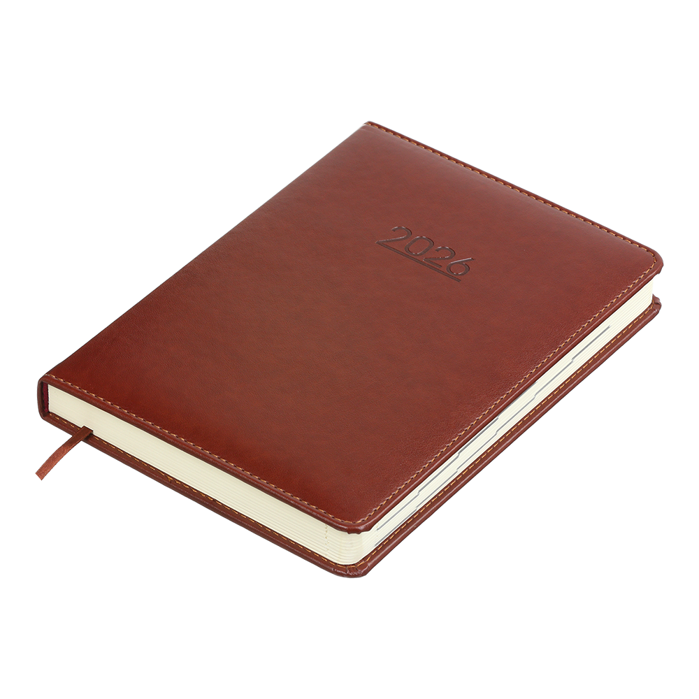 arrow_back_ios Щоденник датов. 2026 PRIME, A5, коричневий, штуч. шкіра/поролон