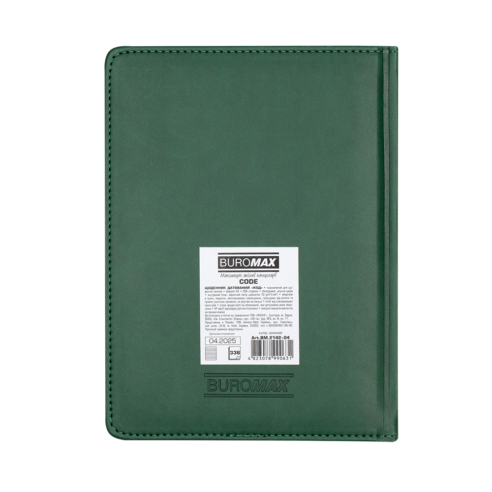 arrow_back_ios Щоденник датов. 2026 CODE, A5, зелений, штуч. шкіра/поролон