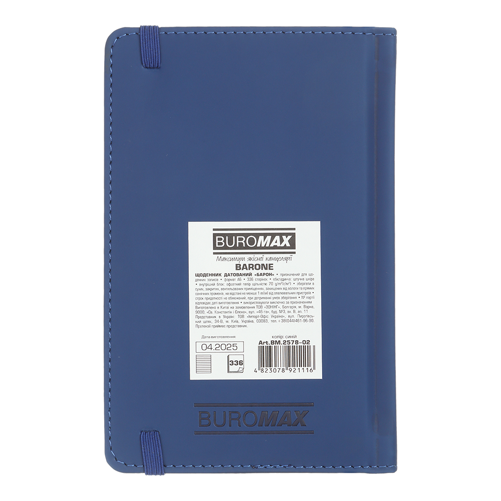 arrow_back_ios Щоденник датов. 2026 BARONE, A6, синій, штучна шкіра/поролон