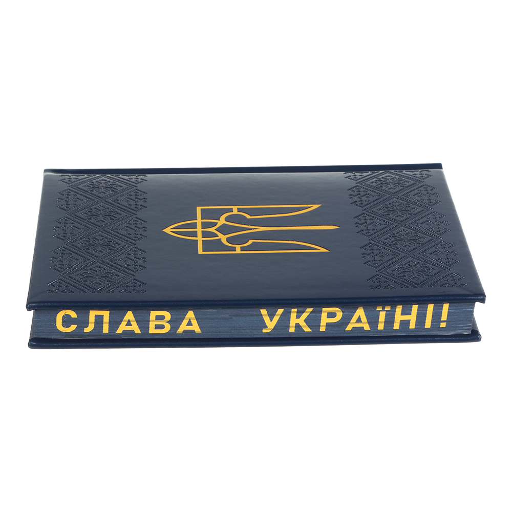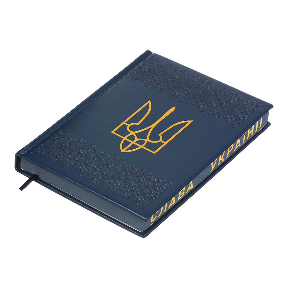 тисненням та тиснення Герба України золотою фольгою. Гармонійно доповнює дизайн