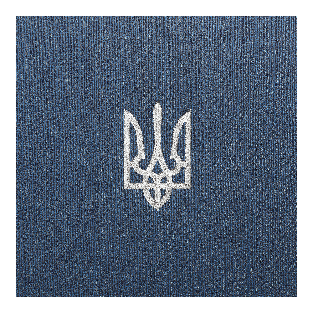 Жорстка обкладинка з бумвінілу з поролоном щоденника POWERFUL має поверхню, що візуально імітує тканину, виконана у патріотичному мотивуючому дизайні з яскравими акцентами - тиснення Державного Герба та напису срібною фольгою. Гармонійно доповнює дизайн тонований сріблом зріз внутрішнього блоку з нанесенням року.