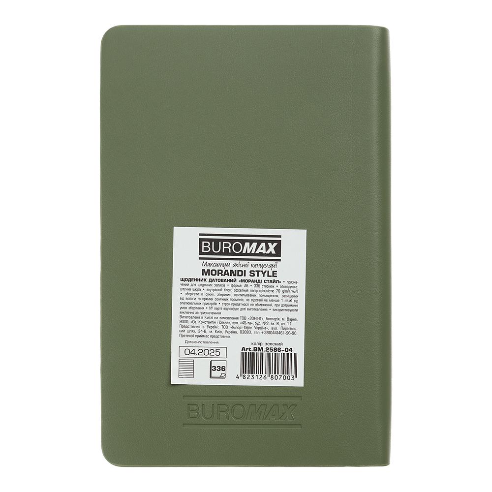 arrow_back_ios Щоденник датов. 2026 MORANDI STYLE, A6, зелений, штуч.шкіра