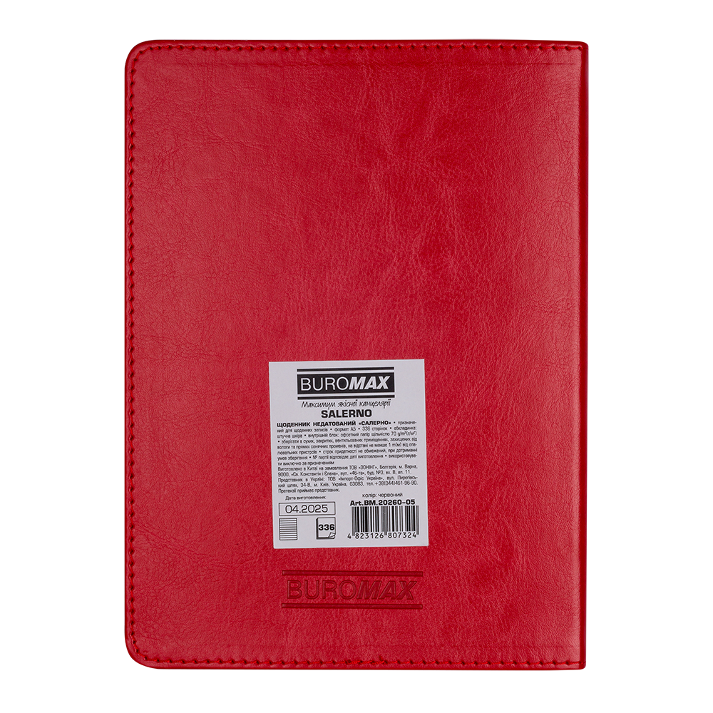 arrow_back_ios Щоденник недат. SALERNO, A5, червоний, штуч. шкіра, 336 стор