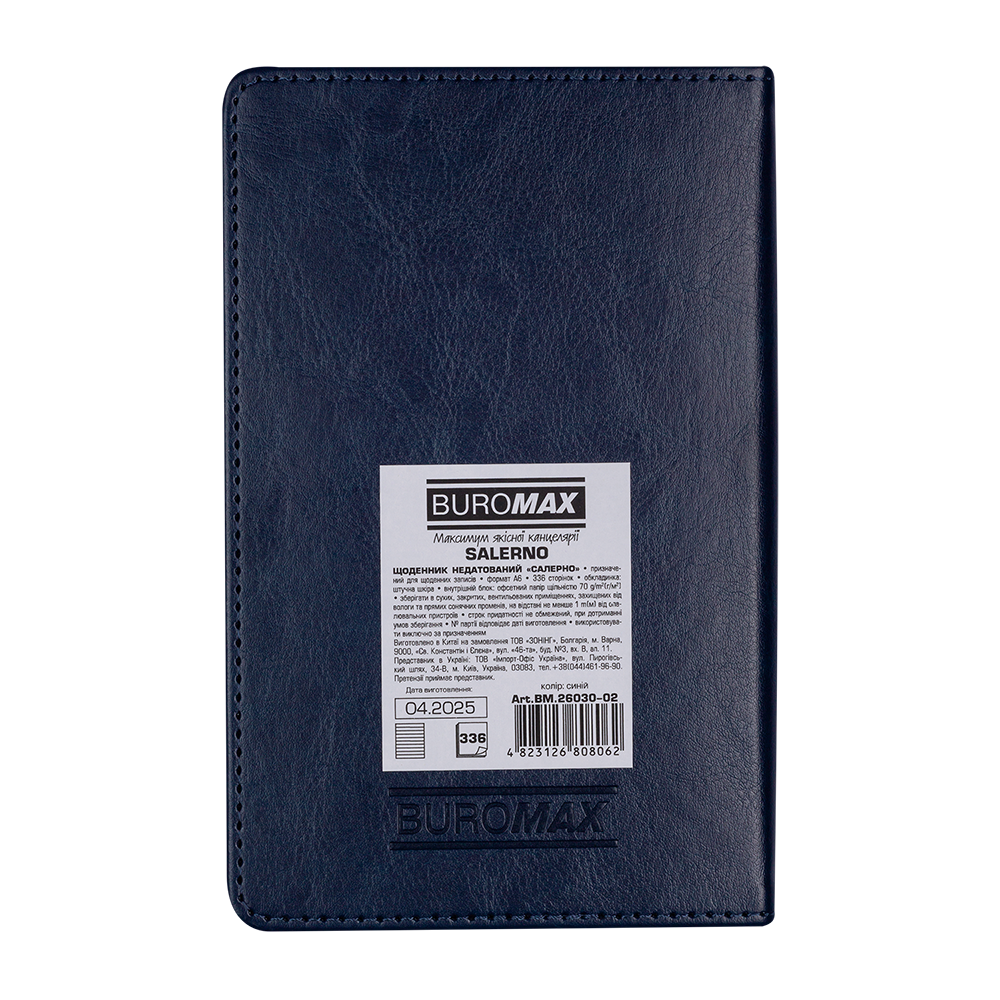 arrow_back_ios Щоденник недат. SALERNO, A6, синій, штуч. шкіра, 336 стор