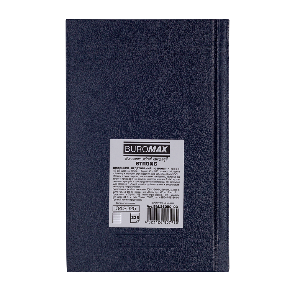 Жорстка обкладинка з бумвінілу з поролоном щоденника STRONG виконана в строго витриманому, лаконічному та елегантному дизайні.