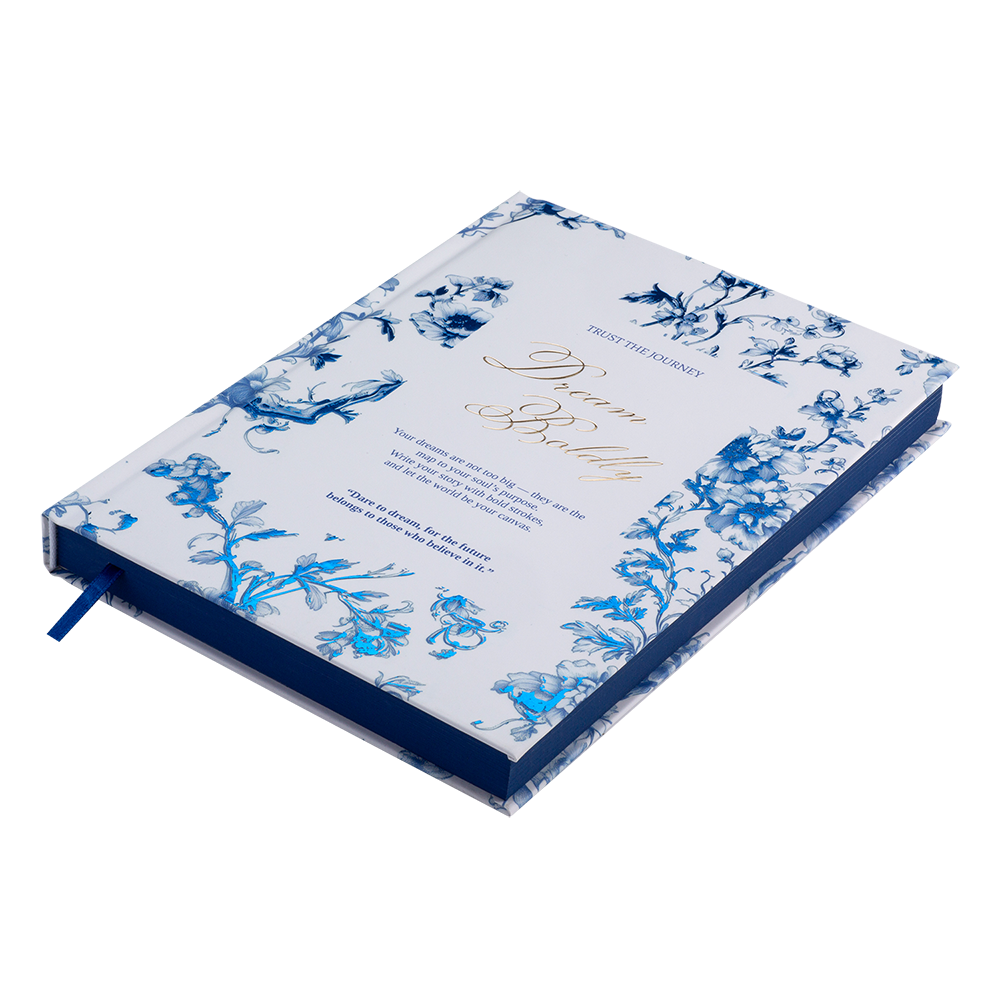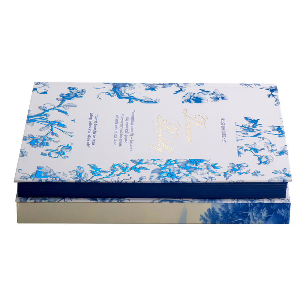 - Повнокольорова обкладинка з матовою ламінацією Soft Touch та поліграфічними ефектами: вибіркове тиснення золотою та блакитною фольгою