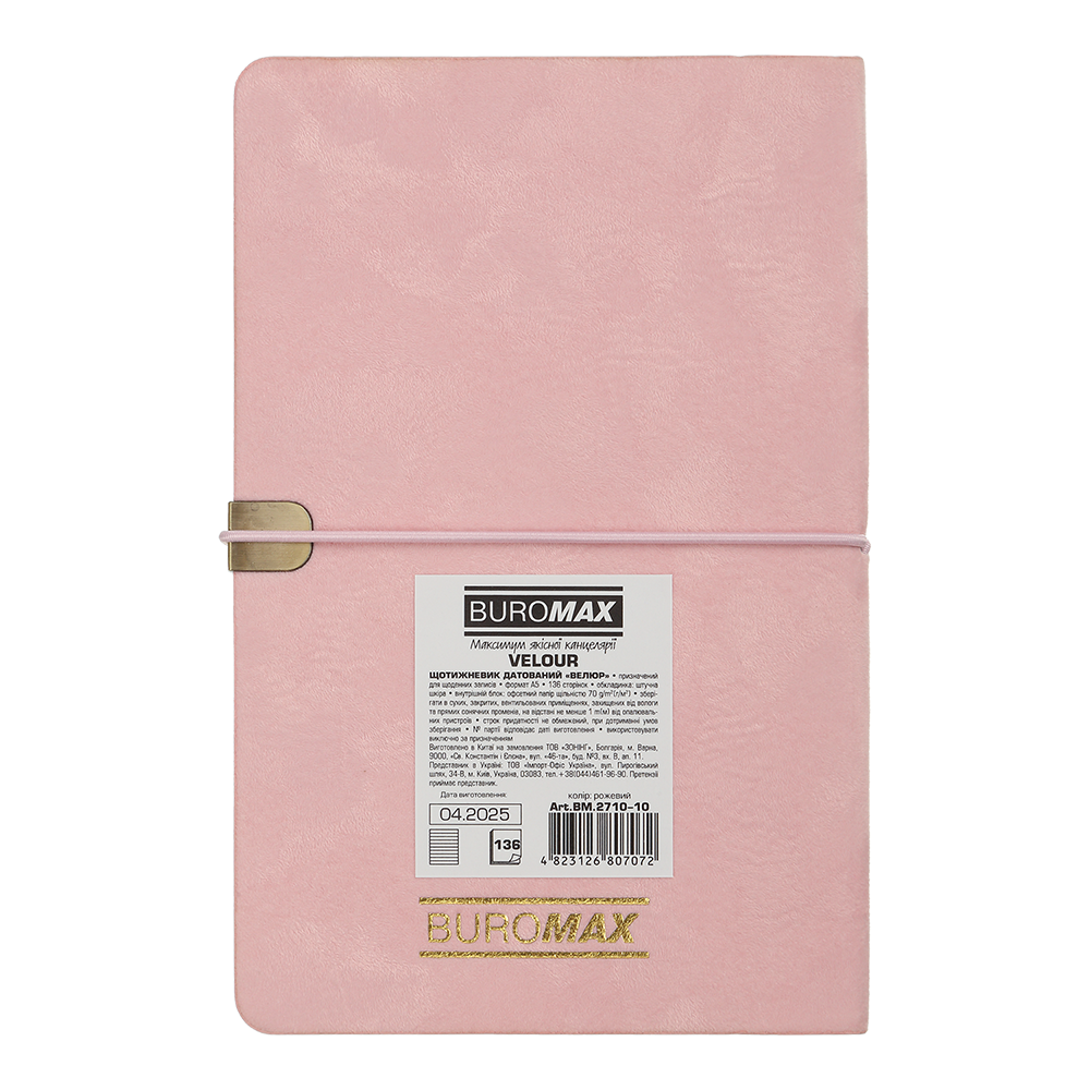 arrow_back_ios Щотижневик датов. 2026 VELOUR, A5, рожевий, штуч.шкіра