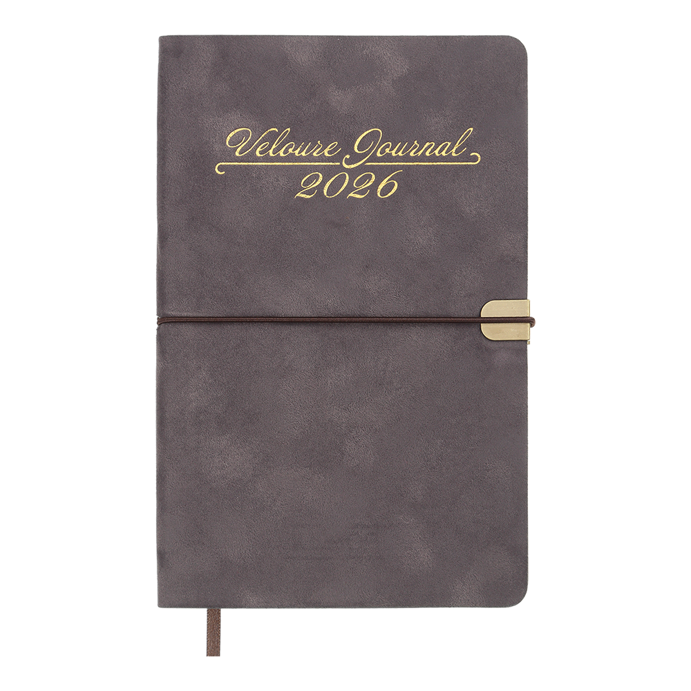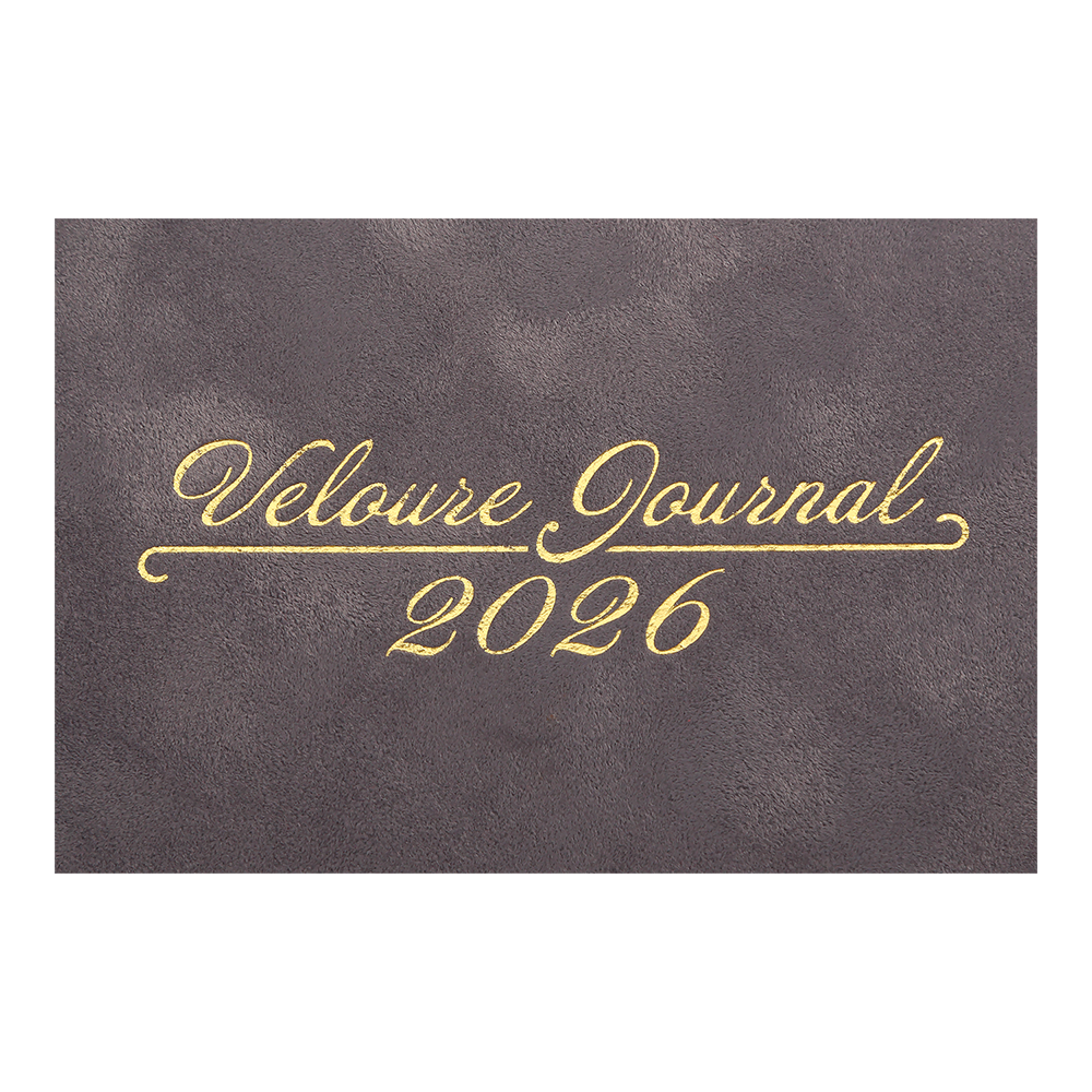 Гнучка обкладинка щотижневика VELOUR виконана з штучної шкіри з виразним оксамитовим покриттям. Дві функціональні шильди на лицьовій та зворотній стороні обкладинки з поглибленнями для поперечної гумки забезпечують зручну та надійну фіксацію щоденника в закритому стані. Дизайн гармонійно доповнює та збагачує тонований срібним кольором зріз внутрішнього блоку та тиснення срібною фольгою року і напису на лицьовій стороні обкладинки.