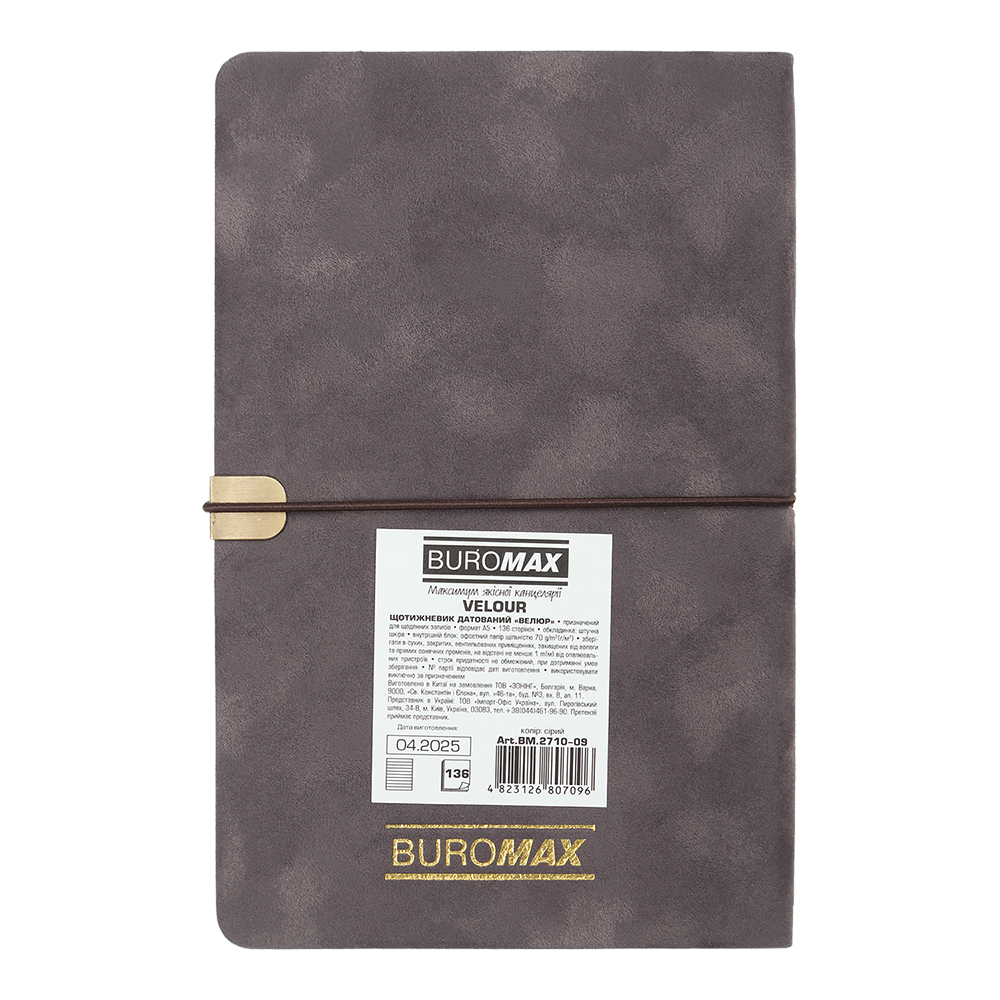 arrow_back_ios Щотижневик датов. 2026 VELOUR, A5, сірий, штуч.шкіра