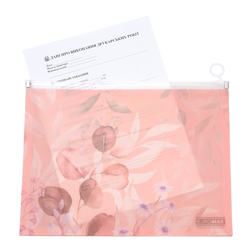 Папка-конверт із Zip-застібкою серії ARABESKI від BUROMAX підходить для систематизації, зберігання та транспортування документів. Папка виконана в ніжному квітковому дизайні, що неодмінно приваблюватиме і надихатиме! Така папка підійде для відвідування ділових зустрічей, транспортування та зберігання паперів, навчальних матеріалів, посібників та багато іншого. Папка стане в нагоді співробітникам офісних та бізнес-центрів, фінансових відділів та установ, студентам та школярам, захистить вміст від зминання, намокання або забруднення.