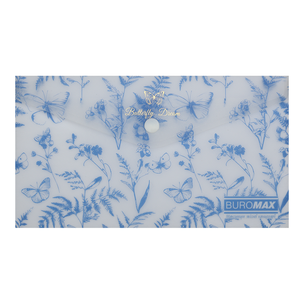 Папка-конверт євроформату DL на кнопці серії ARABESKI від BUROMAX підходить для зберігання і транспортування документів, має зручний формат для подорожей. Папка виконана в ніжному квітковому дизайні з вишуканим золотим фольгуванням, що неодмінно буде приваблювати і надихати! Папка найкраще стане в нагоді співробітникам туристичних та рекламних агенцій та компаній, гідам та маркетологам, та багатоьм іншим споживачам, захистить вміст від зминання, намокання чи забруднення.