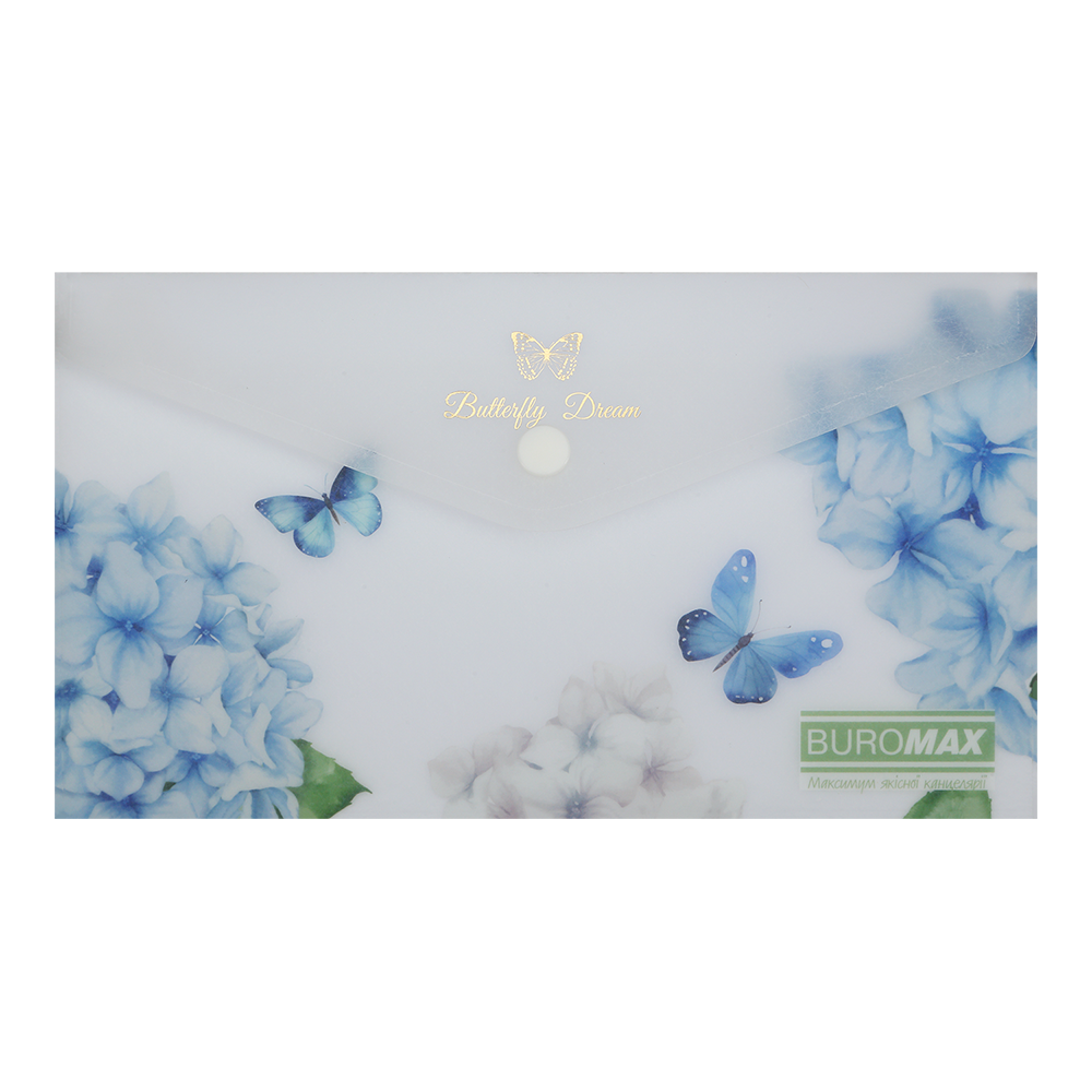 Папка-конверт євроформату DL на кнопці серії ARABESKI від BUROMAX підходить для зберігання і транспортування документів, має зручний формат для подорожей. Папка виконана в ніжному квітковому дизайні з вишуканим золотим фольгуванням, що неодмінно буде приваблювати і надихати! Папка найкраще стане в нагоді співробітникам туристичних та рекламних агенцій та компаній, гідам та маркетологам, та багатоьм іншим споживачам, захистить вміст від зминання, намокання чи забруднення.