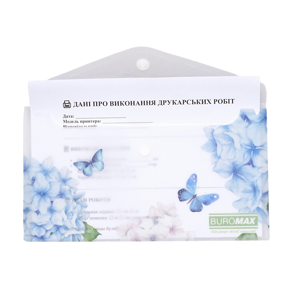 - закривається клапаном за допомогою пластикової кнопки, що забезпечує надійне збереження паперів та легкий доступ до них