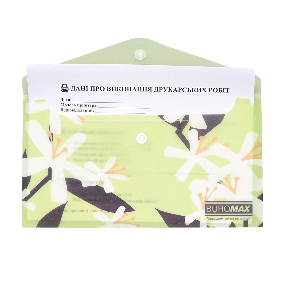 arrow_back_ios Папка-конверт DL на кнопці, PLUMERIA ARABESKI, напівпрозора, салатова