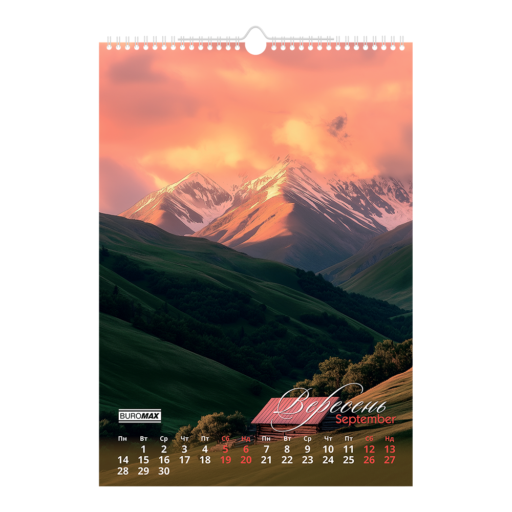 arrow_back_ios Календар настінний 2026 р., А3, 1 пружина, Seasons landscape