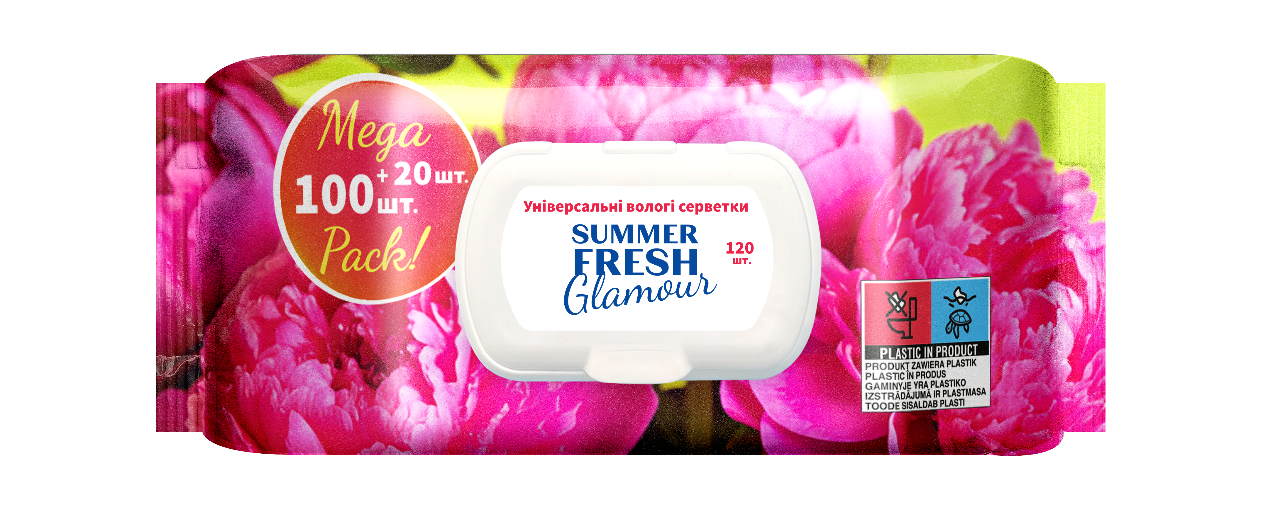 Зручний формат упаковки з 120 серветками дозволяє завжди мати їх під рукою вдома, на роботі чи в подорожах. Оберіть Summer Fresh Glamour і насолоджуйтеся бездоганною чистотою та приємним ароматом у будь-який момент!
