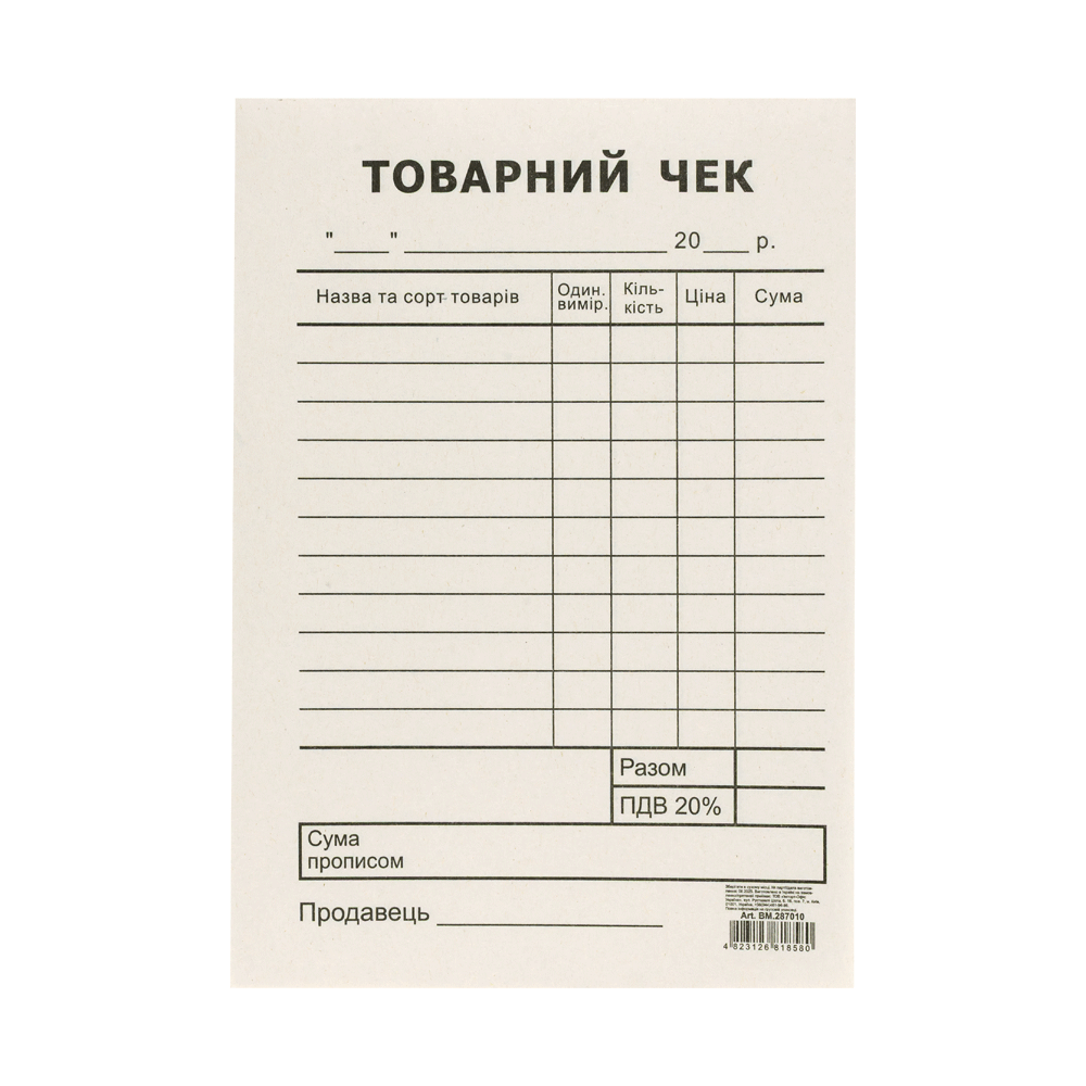 Формат А6Орієнтація бланка: вертикальнийВиготовлений на газетному папері щільністю 42 г/м²ОдностороннійДрук в 1 колірБланки проклеєні по короткій стороні в блоки по 100 арк.